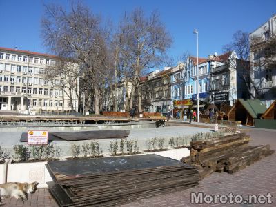 Служителите са стоварили и дървени плоскости, с които скоро трябва да бъде покрит градският фонтан. На мястото всяка година от Общината монтират обичаните от деца и възрастни неонови фигури на Дядо Коледа, еленчетата и Снежанка. Каква точно ще е украсата за предстоящите празници обаче още не се знае. От градската управа до последно не разкриват дали този път ще има нови елементи.