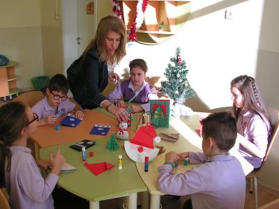 Коледната работилница е мястото, където малки и големи създават своите творби. С помощта на учители и родители те работят от началото на месеца и дори изпълняват поръчки за коледни картички.