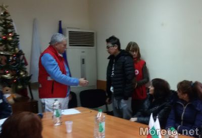 Днес лично председателят на организацията в морската столица Илко Раев приветства децата и техните семейства. Той връчи на всички, дошли да получат помощта и по едно плюшено мече с наименованието на червенокръстката структура.