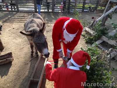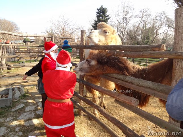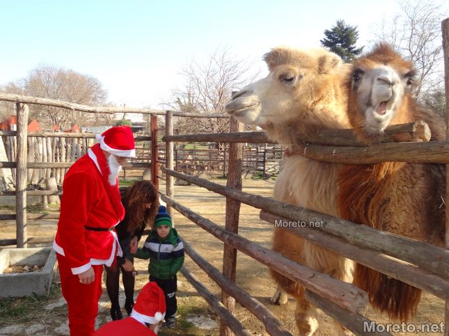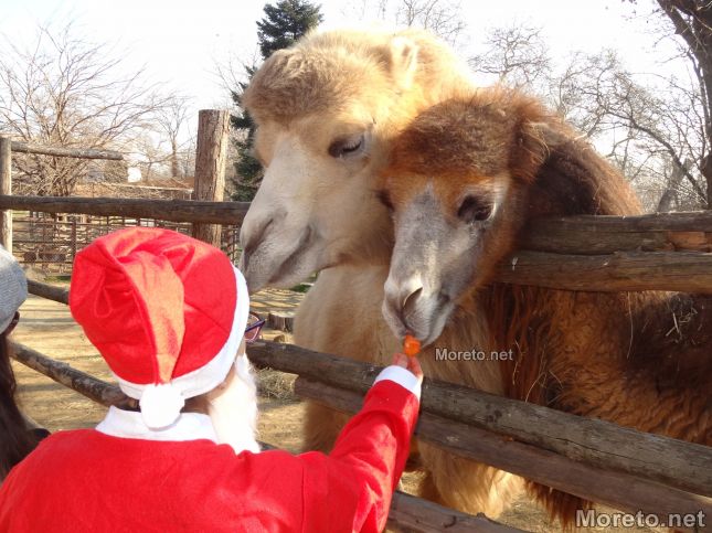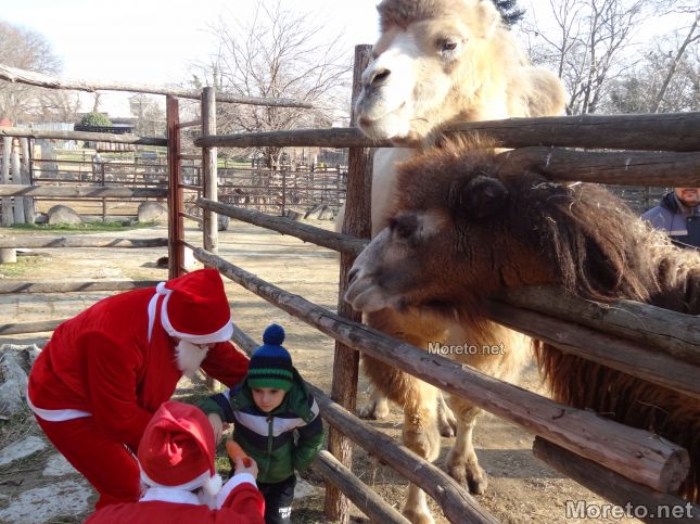 Дядо Коледа пък раздаде на обитателите на зоопарка от любимите им лакомства. Маймунките например получиха стафиди и фъстъци, които много обичат да похапват. Камилите, прасенцата и козичките получиха от любимите си моркови, ябълки и цвекло.