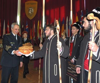 След края на официалната част, момчетата от групата коледари от Първа езикова гимназия с ръководител г-жа Нели Димова представиха пред военнослужещите и цивилните служители ритуал, с който коледарите „наричат” за здраве и берекет стопаните на домовете и тяхното домочадие. Всички присъстващи бяха възхитени от изпълнението на коледарите и най-вече от факта, че те съхраняват и обогатяват по един невероятен начин националните ни традиции.