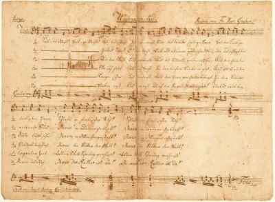 Оригиналният текст, написан собственоръчно от Йозеф Мор и само в един екземпляр още през 1816 г. Едва две години по-късно текстът е дописан с музика.