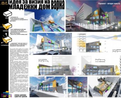 Проектът на архитектите Петър Стефанов, Виктория Иванова и Елица Коева бе класиран на първо място в конкурса за изработване на идеен архитектурен проект за обща визия, изграждане на достъпна среда, ремонт и преустройство на Младежкия дом в града, научи Moreto.net. Конкурсът бе организиран от Община Варна и местната структура на Камарата на архитектите в България, като целта бе цялостно обновяване на сградата във връзка с избора на Варна за Европейска младежка столица през тази година.