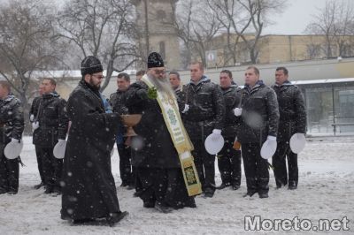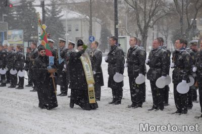 Бойните знамена бяха осветени тържествено за Йордановден, въпреки бурния вятър, снега и студа във Варна, предаде репортер на Moreto.net.
