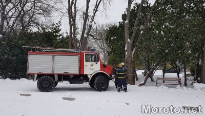 Силният вятър и снегът са откършили тежкия клон в района на тихата алея за майки с деца. За щастие няма пострадали.