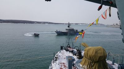 За безупречно изпълнение на функционалните задължения, проявен висок професионализъм и отговорност при отстраняване на последствията от утежнената зимна обстановка в област Бургас на 31.12.2016 г., командирът на флотилията награди военнослужещи от военните формирования, дислоцирани в пункт за базиране Бургас, участвали в дейностите за оказване помощ на населението.