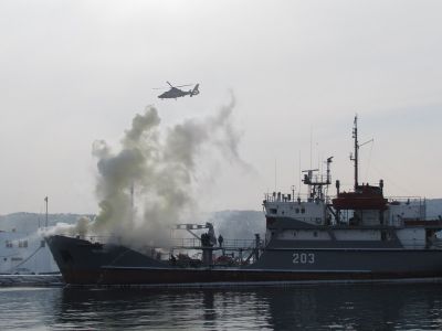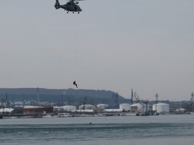 От борда на базов миночистач „Прибой” от състава на дивизион миночистачни кораби, гостите и представителите на средствата за масова информация наблюдаваха епизоди по обезвреждане на невзривени боеприпаси на брега и на море, обследване на подводната част на кораби за наличие на подводни взривни устройства и проверка, задържане и отклоняване на плавателен съд, превозващ нелегални емигранти.