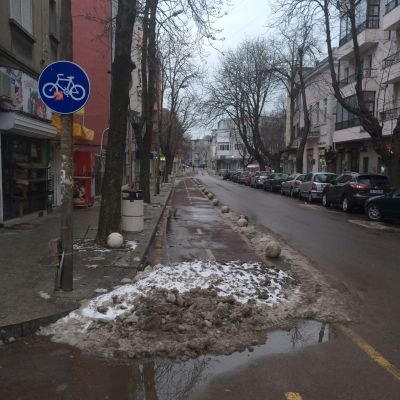 По думите на Пламен Петров при почистването на площите пред някои от магазините и учрежденията в Гръцката махала събраният сняг просто е струпан върху трасетата за велосипедисти. Собственици и наематели не са взели по внимание, че алеите се ползват дори и при ниски температури и зимни условия, смята варненецът.