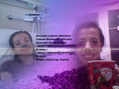 Както знаете състоянието на Виолка в последните месеци се влоши драстично и в момента тя се намира в Интензивното отделение на МБАЛ „Св. Марина“ – Варна. Въпреки усилията на медицинския екип, можем да говорим за известно стабилизиране на състоянието й, но не и за съществено значимо подобрение.