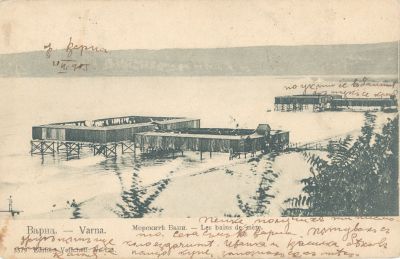Железни колони над водата, облечени в горната си част от дъски в кафяво-червен цвят. Това са представлявали морските бани във Варна, вдигнати в края на 19 век през 1892 година. Те са се намирали на 5-6 метра навътре в морето. Тогавашната придобивка години по-късно е описана в брой от 1937 година на Варненския общински вестник, научи Moreto.net. Припомнянето за дъсчените конструкции е, за да се изтъкнат преимуществата на вече новите масивни морски бани на самия бряг, които са привличали хиляди туристи. За старите дървени постройки свидетелстват снимки на варненеца Михаил Филипов, които подарил на тогавашния помщник-кмет Куртев. На гърба на рамкираните фотоси, отбелязал факти за експлоатацията на баните.
