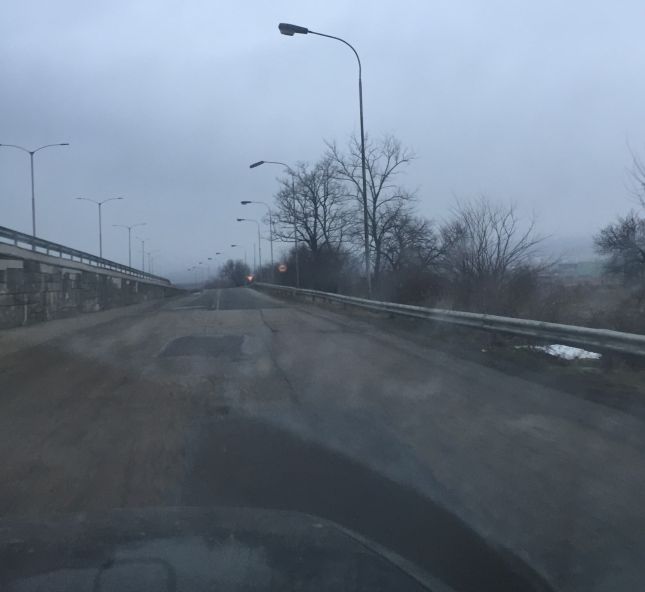 Осветителното тяло е прекършено в горната си част и виси над пътното платно като създава опасност за всяко МПС, става ясно от снимките на варненеца.