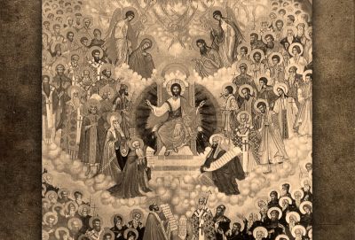 Портретите на българските светии са рисувани извън каноните на иконописта. Техниката е въглен и бял пастел, за по-голяма дълбочина на образа.