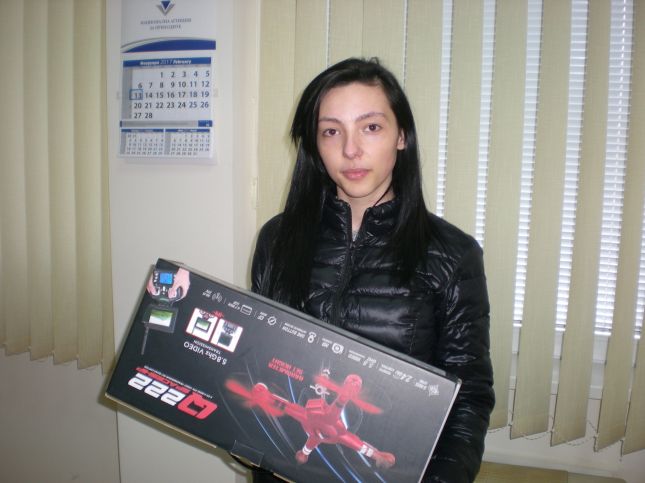 Ученичка от Професионална гимназия по текстил и моден дизайн във Варна спечели дрон от играта “Play за награда“ на НАП. Албена Станчева завършва 12 клас в гимназията, специалност „Козметика“, и участва в играта на приходната агенция от месец ноември на 2016 година. До момента тя е събрала 275 точки, от максимално постигнатите на тестовете 450 точки, съобщиха от НАП за Moreto.net. Атрактивната награда бе връчена от дирeктора на НАП Варна Милена Колева, която пожела на младата варненка да бъде здрава, все така активна и с желание да усвоява нови знания и умения. В играта на приходната агенция участват над 400 ученици от цялата страна, като през месец януари нови 20 участници решават данъчните тестове онлайн. Над 30 са учениците от различни училища в морската столица, които активно следят данъчните уроци и отговарят на зададените въпроси. Най-малките участници са на 7 и 8 годишна възраст и учат в СОУ „Пейо Крачолов Яворов“ в града.