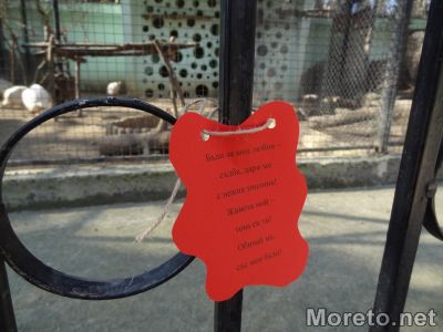 На днешния 14-ти февруари всеки посетител на зоокъта може да намери любовно послание, окачено на оградата, както и бутилка с писмо. Преди обяд любезни служители на парка посрещаха гостите с валентинки и шоколад.