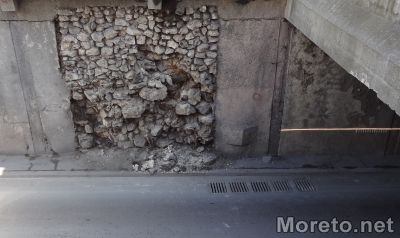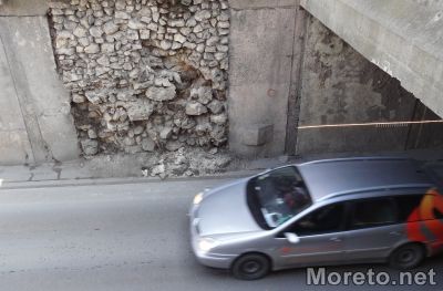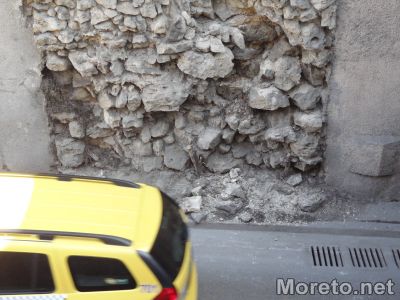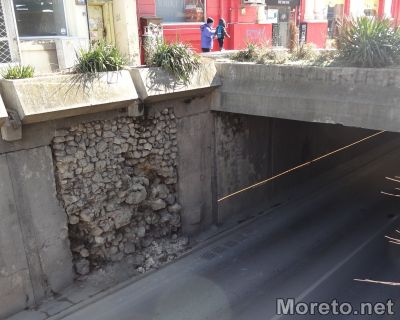 Не е ясна причината за падащите камъни от стената при изхода на подлеза Шипка във Варна, предаде репортер на Moreto.net.