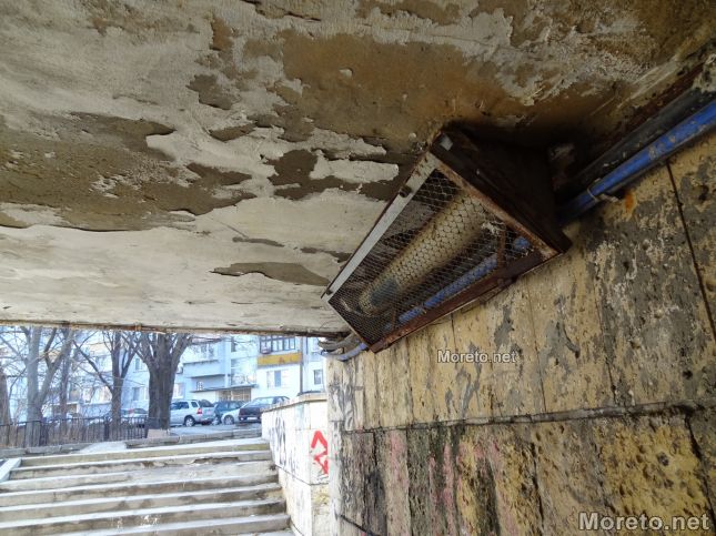 Висящи ламарини и падаща мазилка дебнат пешеходци в подлези във Варна (снимки)