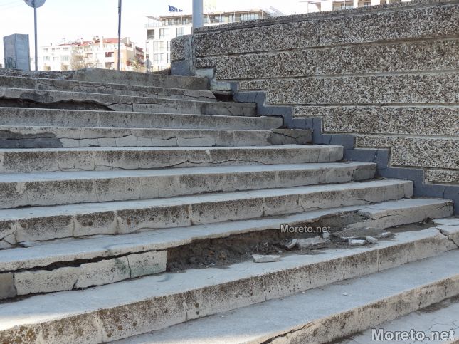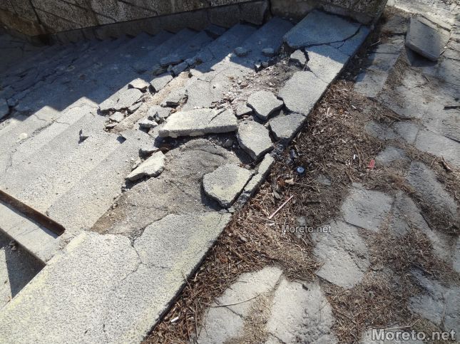 Подобно на много други места и тук на някои от стъпалата стърчат парчета арматурно желязо.