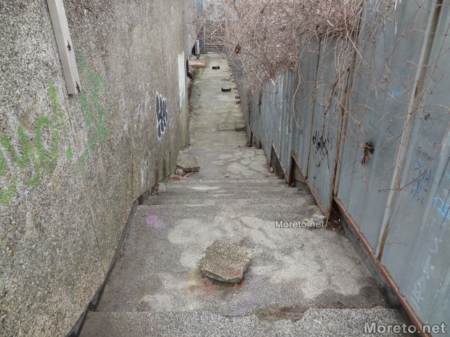 Настилката на стълбите към подземната връзка на бул. „Васил Левски" се рони след последните валежи от сняг. От страната на строежа са паднали огромни късове от тухлената стена към спирката. Изоставените търговски обекти с начупени стъкла в подлеза допълват картината на разруха и предизвикват страх у някои от минувачите когато мястото е безлюдно.