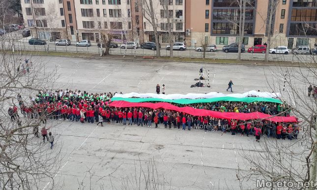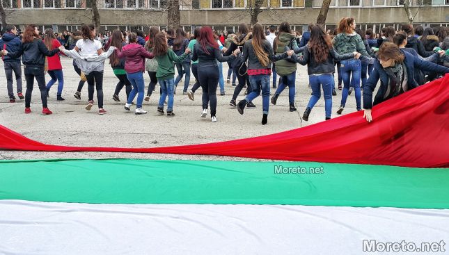 С Дунавско хоро и разпъване на огромен национален трибагреник, учениците от варненската Пета гимназия "Йоан Екзарх" започнаха честванията за 3 март, предаде репортер на Moreto.net.