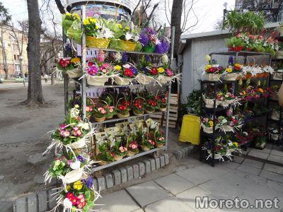 Тази година най-предлагани са лалета, зюмбюли, нарциси и иглики в саксия. Между 2,4 и 4,5 лева е цената на едно цвете в саксийка в магазинчетата в централната част на града, установи репортерска проверка на Moreto.net. Популярни за празника са и цикламите в розово, червено и бяло. На различните места търговците ги предлагат и в съчетание с други цветя, а цената може да достигне и до над 20 лева. По около 35 лева се търгуват аранжировки от различни видове в кошница или кашпа.