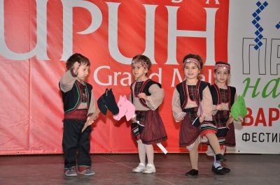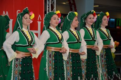 Празнично пременени момичета и момчета изпълват с пъстрите си носии Grand Mall от сутринта, когато стартира състезателната програма на първия фестивал на българския фолклор „Пролетно надиграване" 2017.