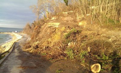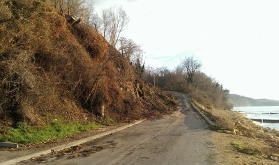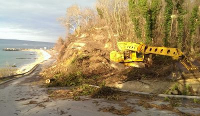 Четвърти ден продължава работата по обезопасяването на свлеклия се скат в района над Четвърта буна на Крайбрежната алея във Варна.