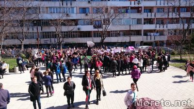 Ученици, родители и преподаватели в Хуманитарната гимназия се събраха днес в училището, за да изразят позицията си в защита на паралелка с професия "Танцьор" с две специалности - "Български танци" и "Модерни танци".