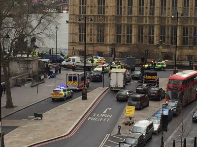 По-рано днес полицията съобщи, че е била повикана заради инцидент с огнестрелно оръжие близо до моста Уестминстър, каза Лидингтън. Според очевидци автомобил се е врязал в група хора на моста.