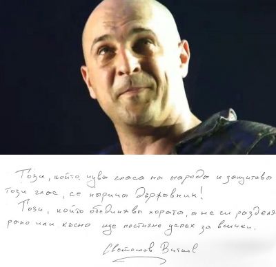 „Идеята е не той нещо да направи, а да прецака другия. Но лидер не се изгражда от битка със себеподобните. Държавникът трябва да обединява хората, не да ги разделя. В политиката правилният начин е да останеш себе си и да не си повярваш, че си повече от другите хора. Политикът служи на обществото, не обратното. Някои от сегашните - най-лаещи в крайно дясното, след изборите ще приключат“, прогнозира певецът.