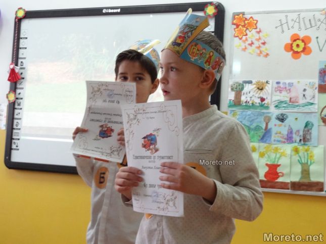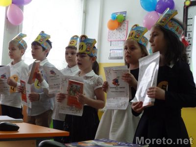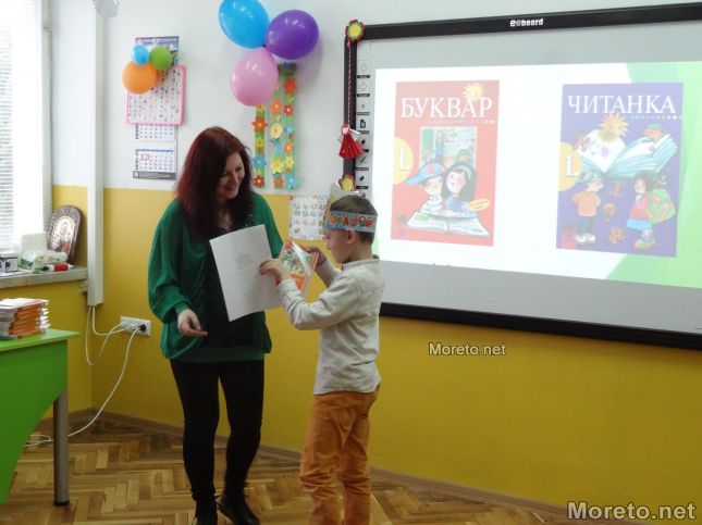 След настъпването на пролетта, учениците от 1 „А" клас се сбогуваха символично с букварчетата си. Те демонстрираха умението да четат гладко и рецитираха стихчета за буквите. Използвайки интерактивна дъска, децата поправяха сгрешени думички и обясняваха как трябва да се изпишат или изговорят правилно.