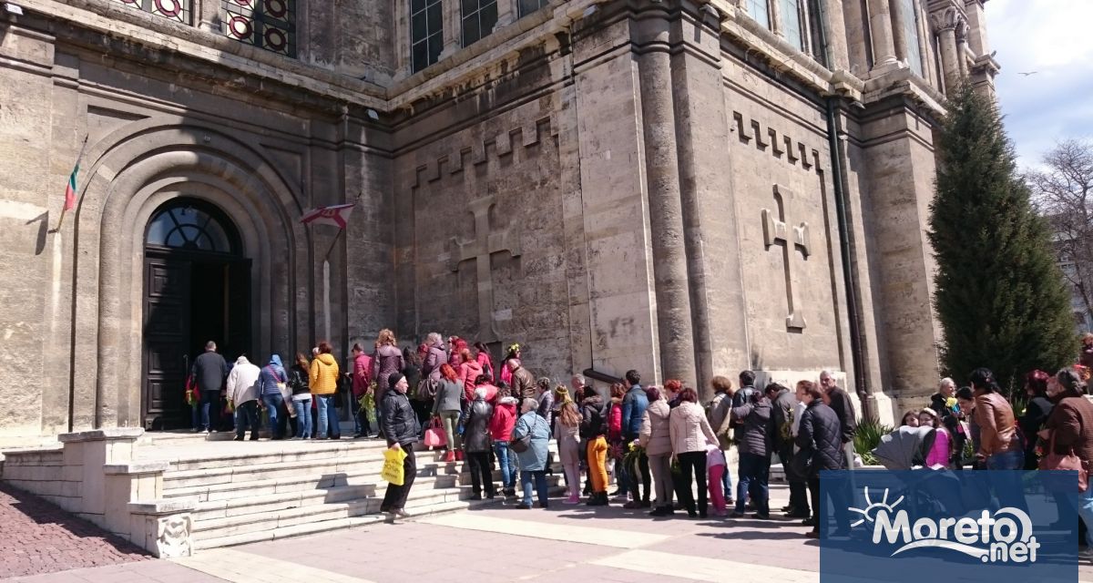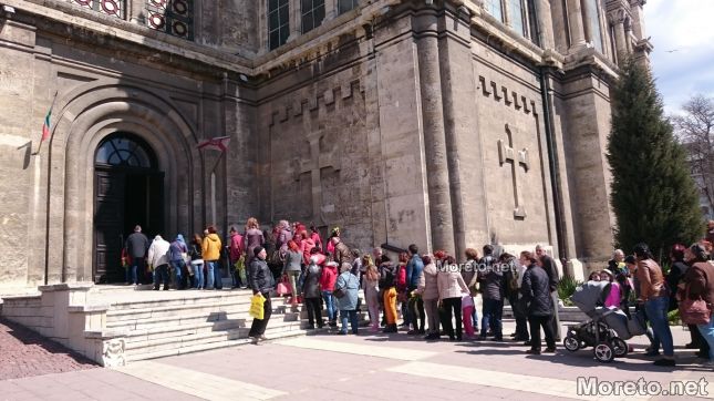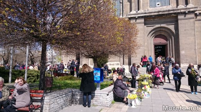 Дълги опашки с миряни се извиха пред варненските храмове за Цветница, видя репортер на Moreto.net.