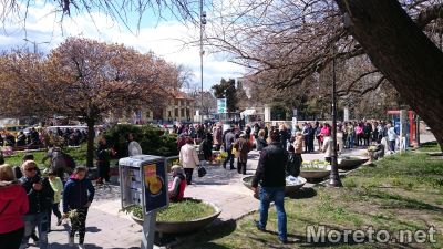 Търговци също бяха пространствата срещу входа на Кадерлата и продаваха цветя на нетърпеливите да чакат на опашка граждани.