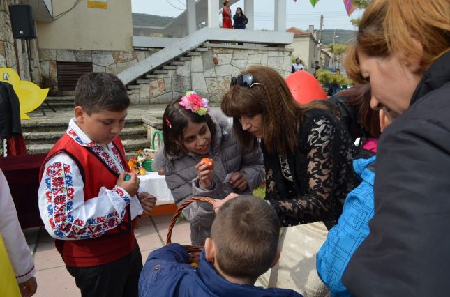Свилен Шитов награди победителите в масовата борба с великденски яйца, в която първенец стана малката Стефани Георгиева. За нея и за нейните подгласници общината бе осигурила тостери, сокоизтисквачки, пасатори и други електродомакински уреди.