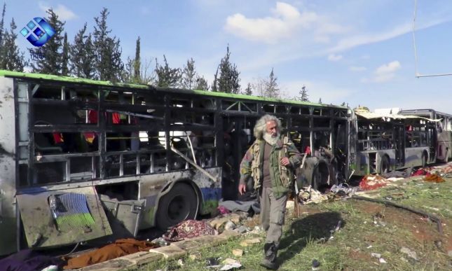 Два автобуса чакали да преминат от обсадената от бунтовниците територия в контролирания от правителството град. С тях се транспортирали жители на две шиитски селища, които са били евакуирани в петък.