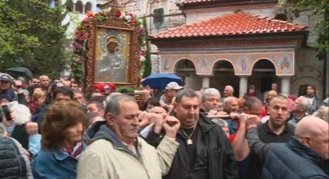 Иконата бе изнесена от манастирската църква "Св. Богородица" от монаси и миряни заедно с хоругвите, а игуменът на Светата обител архимандрит Симон поведе литийното шествие.
