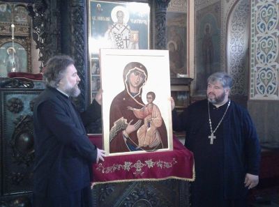 Преди повече от година в енорията на храмовете „Св. Николай” и „Св. Архангел Михаил” се зароди идеята да се подари на българите в Тараклия светиня, която да ни свързва духовно. Първата икона беше копие на чудотворната икона на Св. Георги от манастира „Зограф”. Тогава тя също беше отнесена на Атон, осветена и приложена към оригинала. Втората икона е изографисана върху дъска, изработена от специална дървесина, подарена от българите в Тараклия. И двете икони са изписани от иконографа Петранка Аврамова.