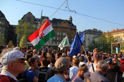 Протестът се състоя на 13-та годишнина от влизането на Унгария в Евросъюза.