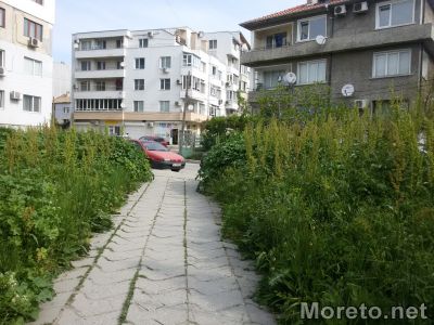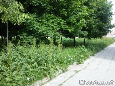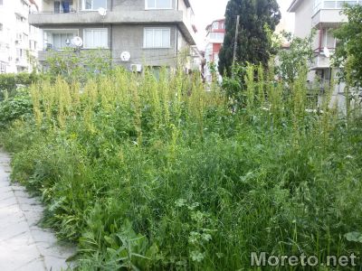 „Тревата е толкова висока, че стига до ушите, едва се виждат пешеходците измежду стръковете", жалват се читатели на Moreto.net, които живеят в района до Регионалната здравна инспекция.