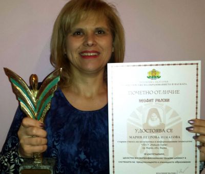 Мария Петрова получи също и най-високото отличие на Министерството на образованието и науката - приза „Неофит Рилски", който се дава за дългогодишната ѝ цялостна високопрофесионална трудова дейност в системата на образованието. Тя е сред официално поканените на приема при Президента Румен Радев на 24 май.