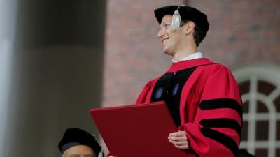 33-годишният Зукърбърг, който е на пето място по богатство в света с 62,3 млрд. долара, напусна висшето училище през 2004 г., за да се посвети на разрастването на компанията си.
