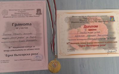На 27 май Камелия Иванова от Варна получи трета награда и медал на деветото издание на националния конкурс за песни "Една българска роза" в гр. Казанлък, научи Moreto.net.