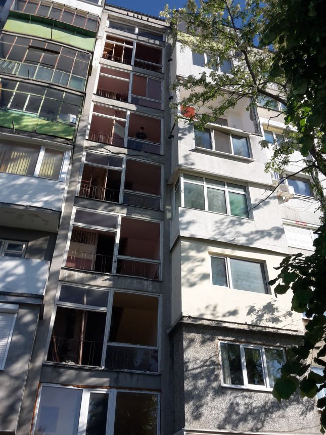 Бутилка с газ се запалила и гръмнала на тераса в един от апартаментите, а взривът бил толкова силен, че изпочупил всички стъкла от остъклението на входа от първия до осмия етаж.