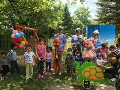 Благодарение на актьорите, много песни, танци и финално весело влакче децата забравиха здравословните си проблеми и почувстваха истински днешния си празник.