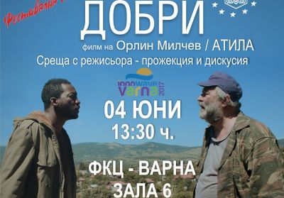 Орлин Милчев с артистичното име Атила, ще представи късометражния филм „Добри” - селектиран на редица международни фестивали и получил награда за най-добър български филм на студентския фестивал “Рано пиле”. Сюжетът е актуален – разказва за трудния път на бежанеца и приятелството между двама мъже от два различни свята. В покрайнините край границата овчарят Кольо се натъква на нелегален бежанец в младежка възраст. Тяхната среща създава необичайна връзка, но скоро те ще трябва да се изправят пред страха и агресията на хората от близкото село...