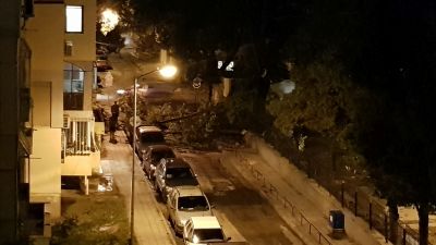 Паднали клони на дървета потрошиха четири автомобила. Най-сериозно е пострадала кола с марка "Пежо", която е била паркирана на улица "Константин Доганов". Вследствие на удара тя е с потрошен таван и счупени предно и странични стъкла. Другите два пострадали автомобили са на улица "Оборище", където прекършено от вятъра дърво се стовари насред пътното платно. Четвъртия случай е на ул. "Генерал Столипин". Там кола е с огънат таван заради паднал клон.