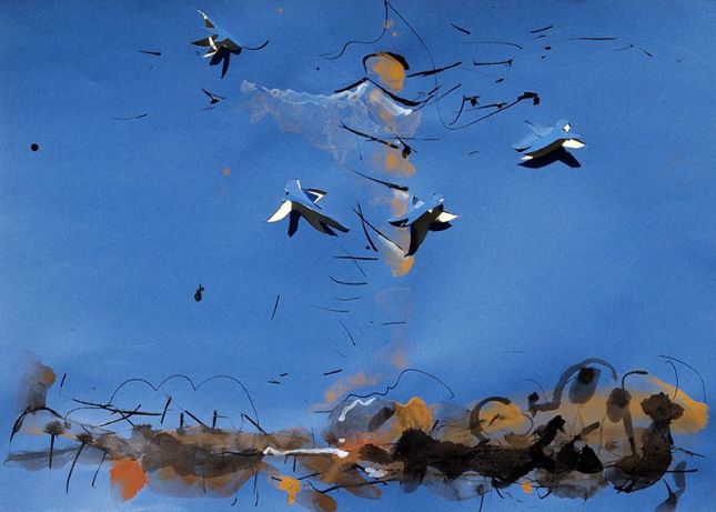 Изложбата съчетава фигурални, пейзажни и цветни импресии. В нюансираната лилаво- синкаво-розова пастелност единствената творба в натрапващо се свободолюбиво, реещо се и дишащо синьо е картината, носеща заглавието на изложбата. Въздушният акварел разтваря сетивата ни, слънчеви паяжинки ги устремяват към други измерения, там където можем да погледнем към себе си и заобикалящият ни свят от друг ъгъл. И да се потопим в тази необятност.
