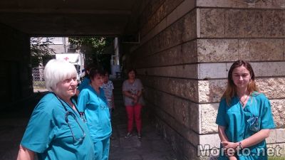 Лекари от Центъра за спешна медицинска помощ излязоха на символичен протест срещу насилието над медици, предаде репортер на Moreto.net.