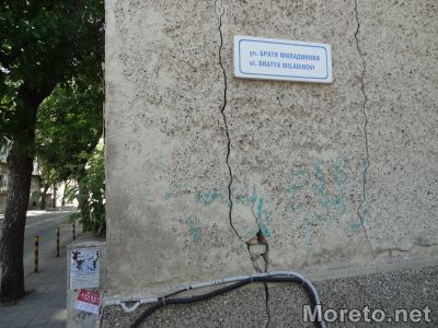 Части от рушаща се фасада застрашително висят над един от най-използваните тротоари в центъра на Варна, на метри от Общината, видя репортер на Moreto.net. От години необитаемата къща на кръстовището на улиците „Цар Асен“ и „Братя Миладинови“ привлича погледите с напуканите си зидове и разпадащи се елементи от тухли и цимент. Сега обаче парчетата мазилка изглеждат така сякаш във всеки един момент могат да се стоварят върху главите на хората.