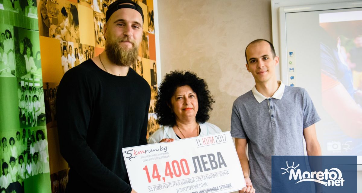 Организаторите на благотворителните бягания от инициативата „Дари времето си на 5kmrun“ връчиха символичен чек на лекарите от Първа детска клиника в УМБАЛ „Св. Марина“ във Варна. Със събраните средства от кампанията ще бъде закупена система за продължителна инсулинова терапия за критични състояния с нарушение на кръвната глюкоза за варненската университетската болница „Св. Марина“, научи Moreto.net.