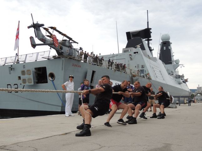 В състезанието по теглене на въже, провело се на пирса на Морска гара Варна, победител беше отборът от Втората постоянна група кораби на НАТО. На второ място се класира втория отбор на българските военни моряци, на трето - отборът на гръцките военни моряци.